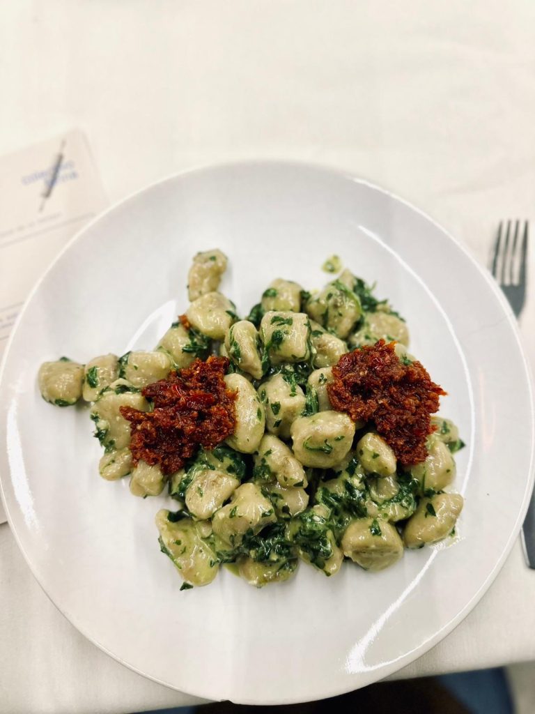 La dinámica se materializa en un menú donde la pasta se elabora a partir de pan viejo recolectado de panaderías locales, acompañada de un pesto de hierbas estacionales recuperadas.